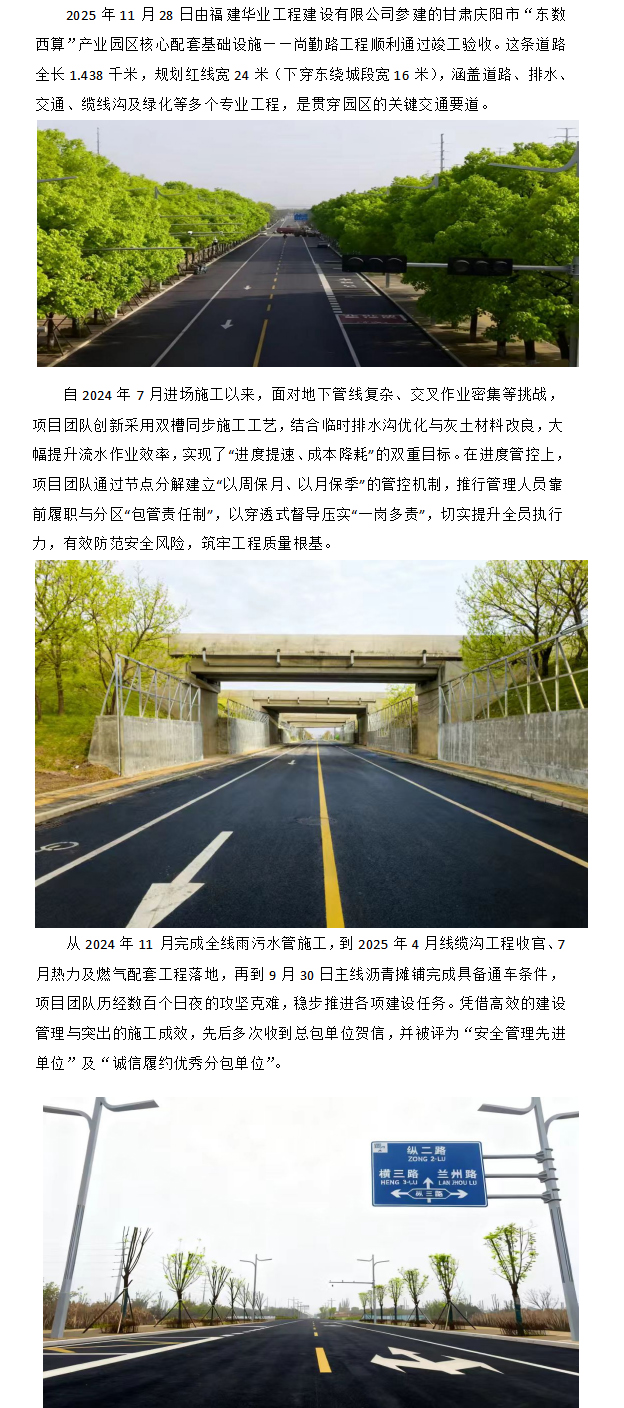 甘肃庆阳市“东数西算”产业园区尚勤路正式通车